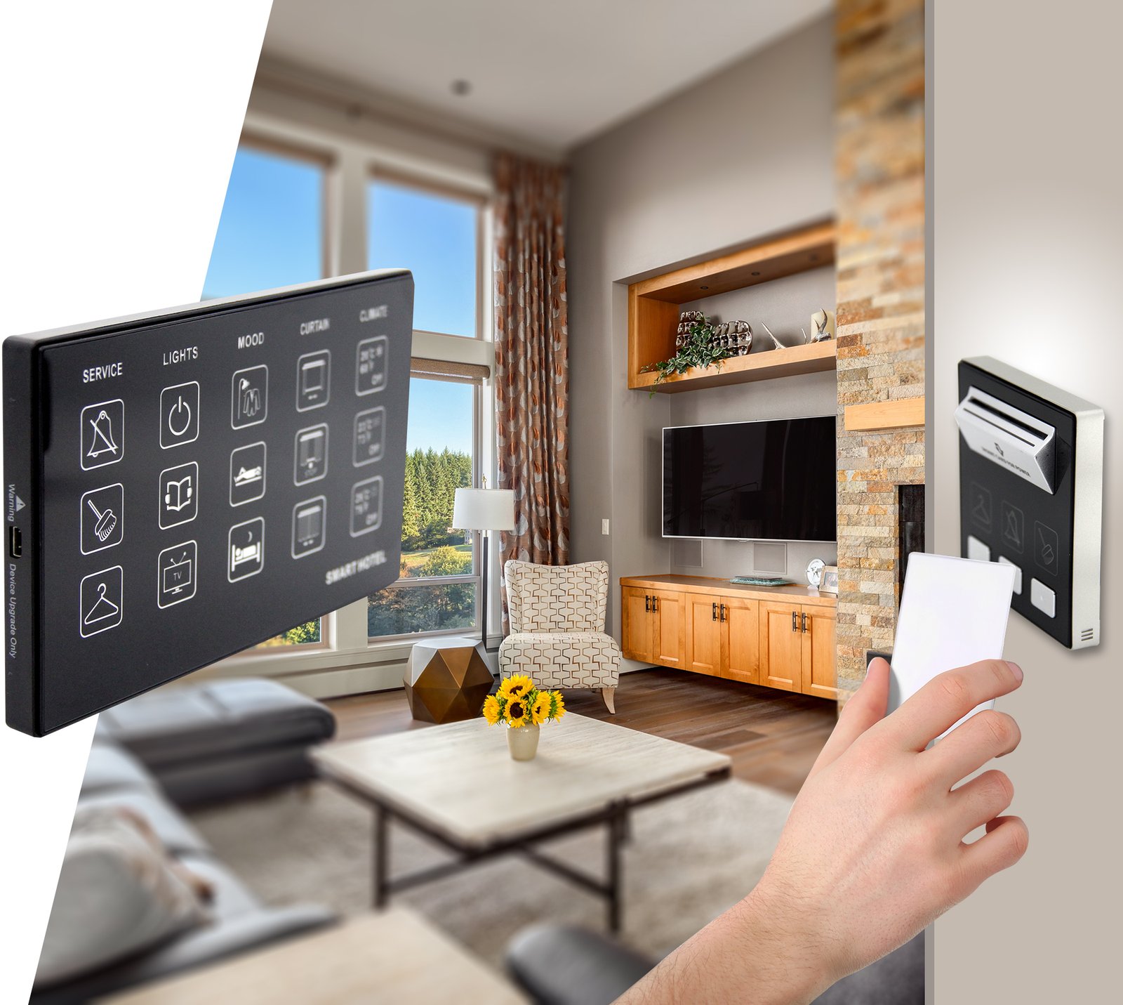 Control lighting, AC, curtains, and more with a single touch or mobile app—perfect for smart, modern, connected hotel rooms and homes.