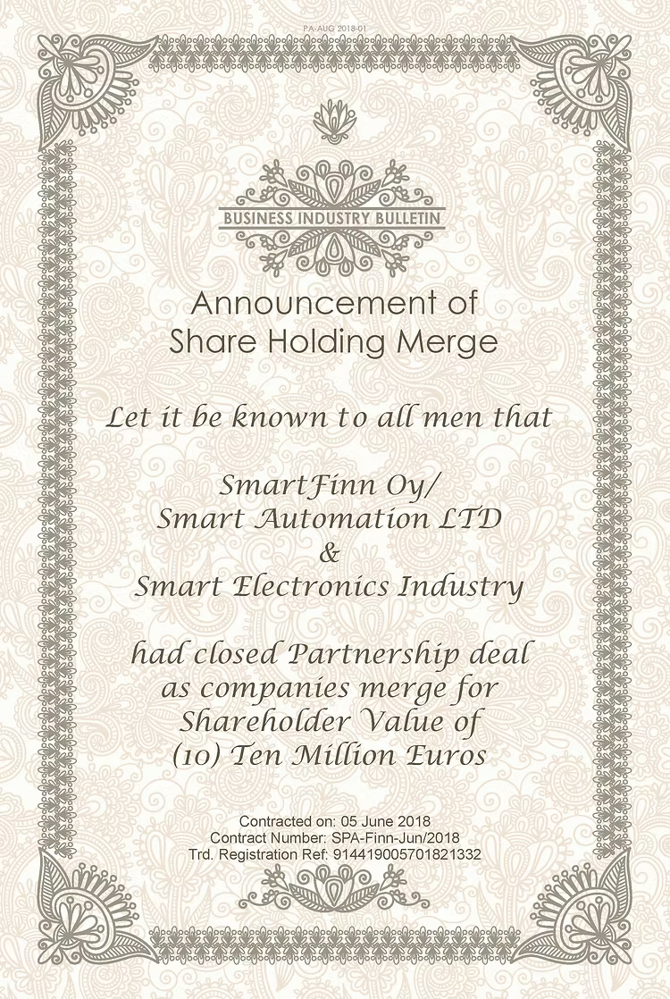 - Smart Finn Oy Share Holder Merge Base: To Handle Nordic Markets
